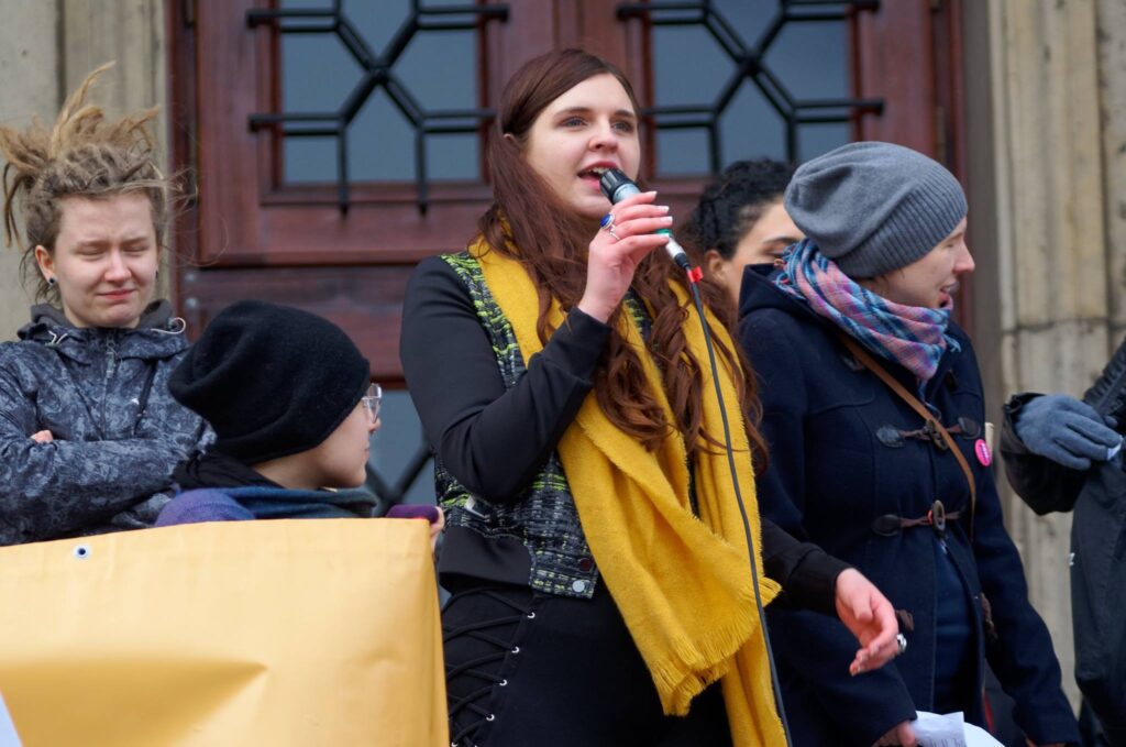 Zaangażowałam się politycznie z niezgody na łamanie w Polsce praw człowieka. Od lat walczę o respektowanie praw tych, których głos jest mało słyszalny: mniejszości, uchodźców, osób niewierzących, osób z niepełnosprawnościami, neuroróżnorodnych i chorujących oraz tych, którzy ledwo wiążą koniec z końcem. Istotny dla mnie temat to prawa Polek: od 2017 pracuję przy organizacji Manif i innych demonstracji w ich obronie. Jako członkini społeczności LGBT+ walczę o nasze prawa i widoczność: współorganizuję marsze równości w Sanoku i w Rzeszowie, jestem także koordynatorką ds. marszów we wschodniej części Polski w Koalicji Miast Maszerujących.